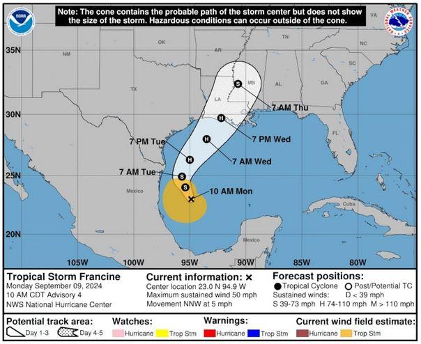2024 sind wir nämlich in New Orleans gelandet und wurden im Hotel direkt mit einer großen Karte empfangen, auf der die mögliche Zugbahn von Hurrikan Francine eingezeichnet war. Zu dem Zeitpunkt hatten wir keine Ahnung, wie nah wir tatsächlich dran waren oder dass wir wenige Tage später sogar aus der Region flüchten würden.